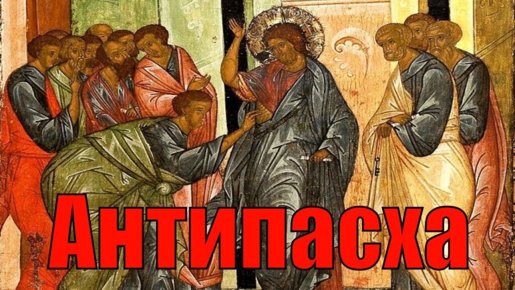 Греческая приставка «анти» обозначает «вместо» или «напротив». То есть неделя напротив или после Светлого Воскресения Христова. Также здесь уместно значение «вместо». Потому что в этот день, завершающий Светлую седмицу, после Литургии которого закрываются Царские врата, а с вечера уже возобновляется чтение Псалтири, мы снова с полной силой вспоминаем Светлое Христово Воскресенье и будто бы вновь погружаемся в атмосферу пасхальной ночи. Поэтому Антипасха – это вместо Пасхи или вторая Пасха.