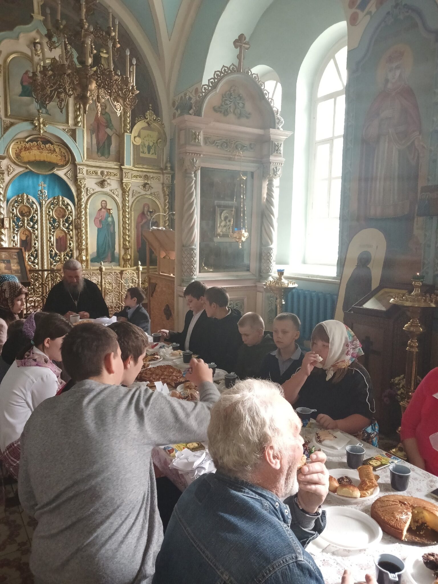 После богослужения для гостей было организовано душевное чаепитие. За трапезой ребята узнали о жизни и подвиге преподобного Сергия, о его роли в объединении русских княжеств и духовной подготовке Куликовской битвы. Именно он благословил князя Дмитрия Донского на ратный подвиг и предрёк победу русскому воинству.