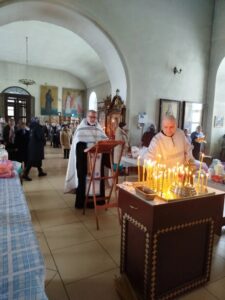 Главное богослужение этого поминального дня начинается накануне вечером. Служба, которая была совершена в нашем храме 13 февраля, называется «Парастас» (от греч. «предстательство», «ходатайство»). Это великая панихида по всем усопшим православным христианам, во время которой духовенство и верующие читают 17-ю кафизму (псалом 118-й) и канон об усопших, испрашивая у Господа милости и прощения грехов для почивших.