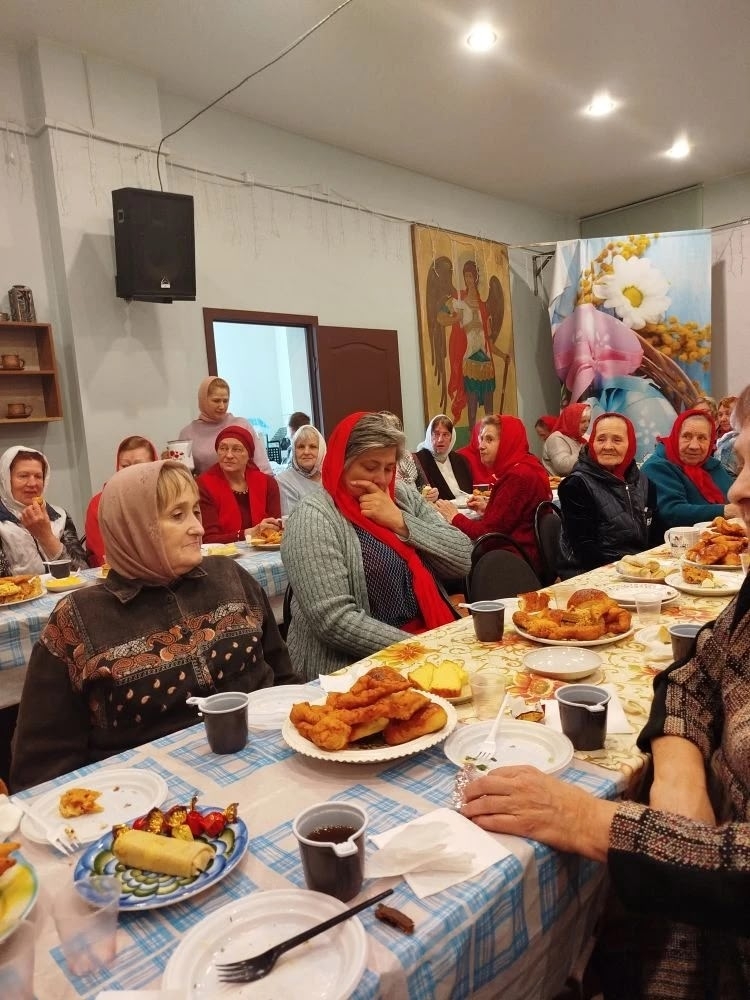 После службы состоялось чаепитие в тёплой, семейной атмосфере. За столом батюшка поздравил прихожанок с днём святых жен-мироносиц, а также вспомнили добрым словом протоиерея Вячеслава Штанько, чьими трудами создан этот приход: восстановлен храм и построен духовно-просветительский центр. Его усердием и верой здесь кипит духовная жизнь, собирающая под сводами церкви многих людей.
